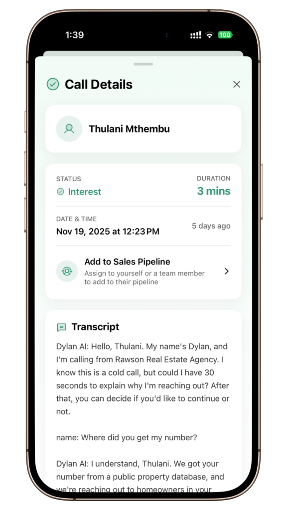 Dylan makes the cold calls, handles objections, and sends you only the warm, motivated sellers and buyers — while you focus on closing deals.